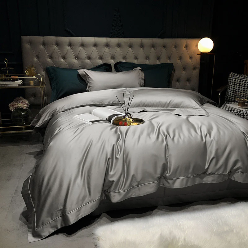 All Cotton Pure Color Denim Four Piece Soft Pure Cotton Quilt Cover 1.8 Bed Sheet And Fitted Sheet Knitted Cotton Bedding