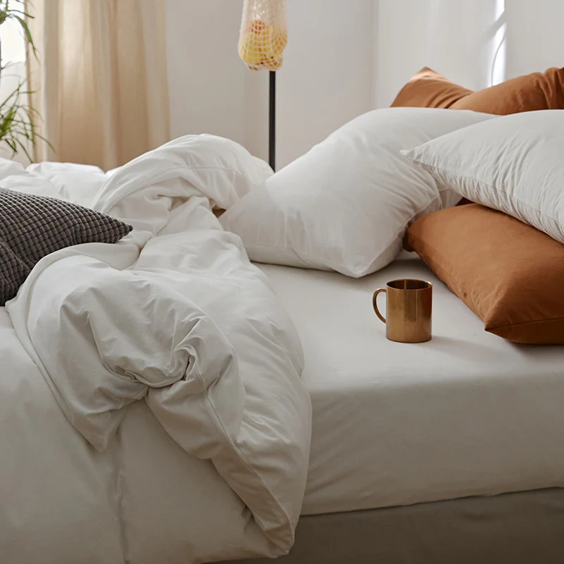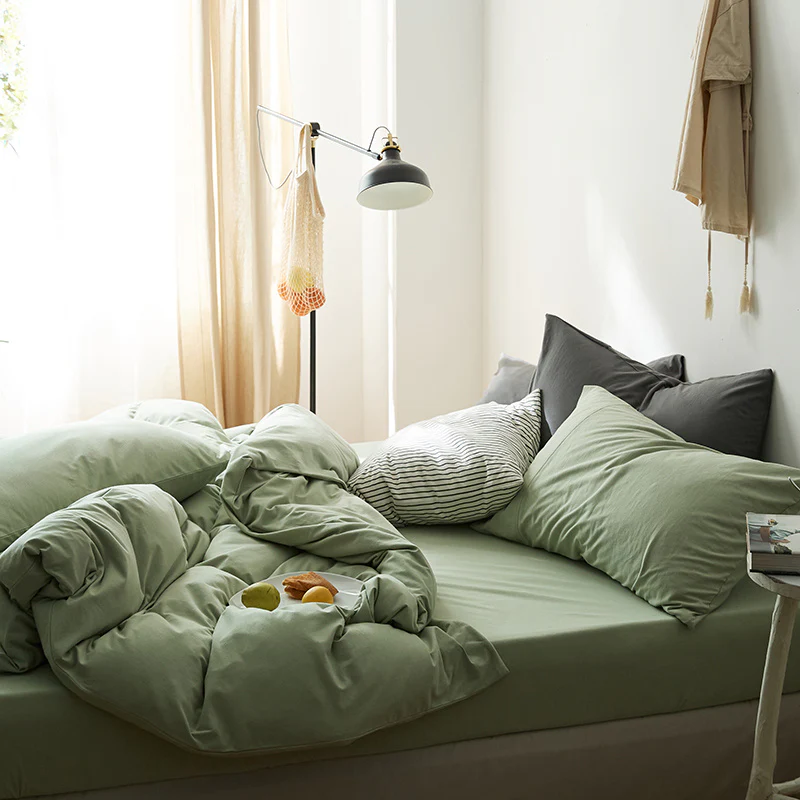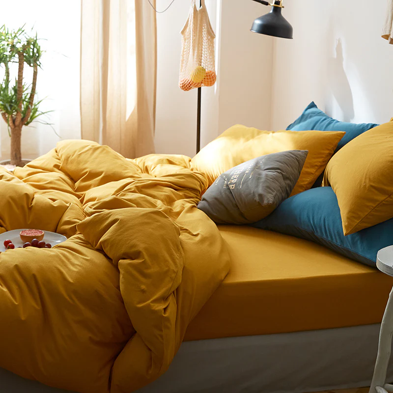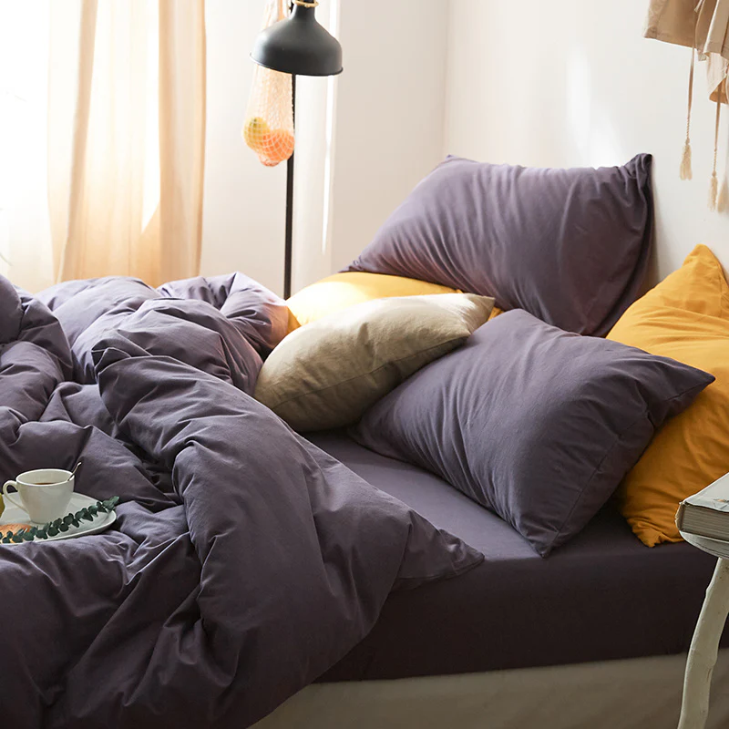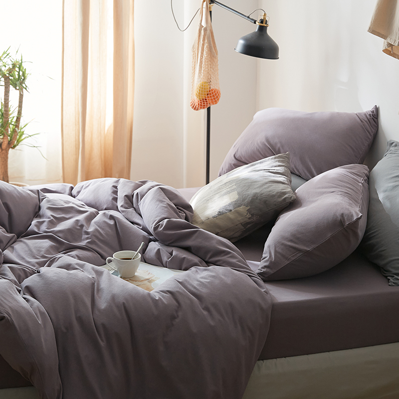 All Cotton Pure Color Denim Four Piece Soft Pure Cotton Quilt Cover 1.8 Bed Sheet And Fitted Sheet Knitted Cotton Bedding
